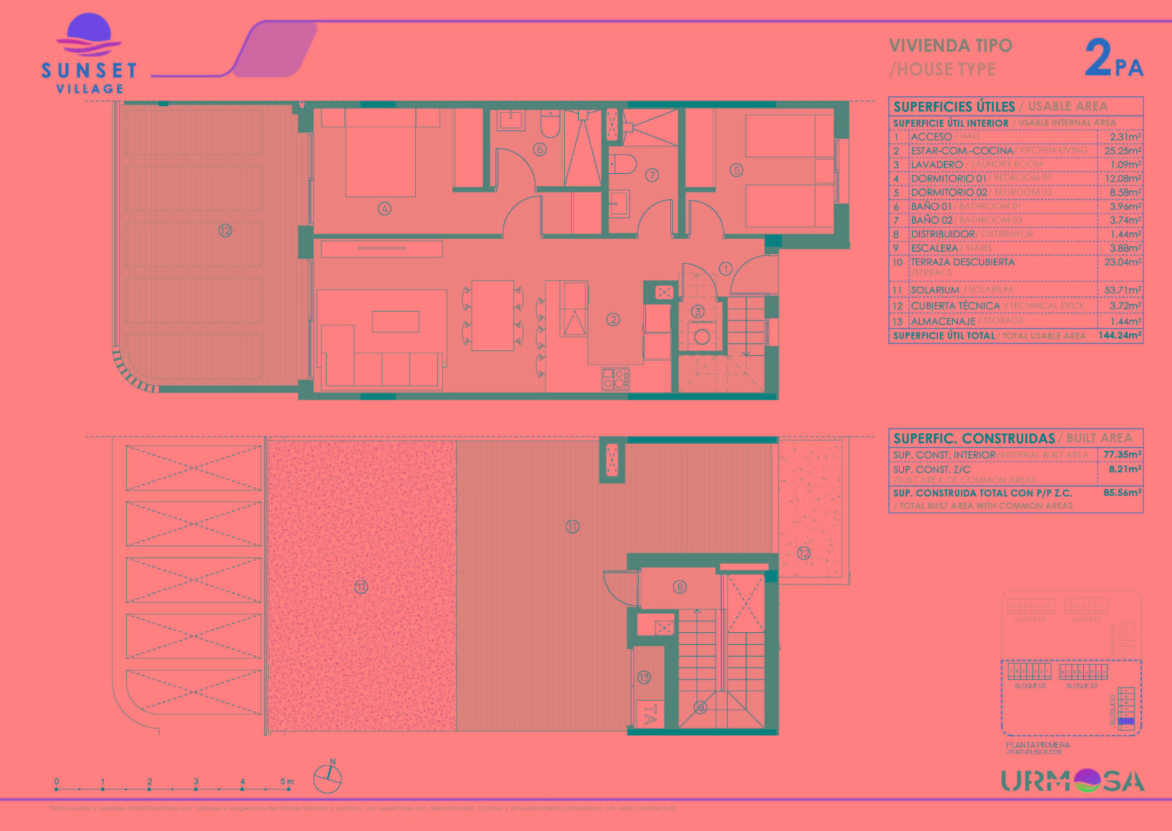 De woningen worden aangeboden met 2 en 3 slaapkamers, allemaal voorzien van 2 complete badkamers en een zuid-/westoriëntatie. De indeling van de gebouwen garandeert dat alle woningen uitzicht hebben op de uitgestrekte gemeenschappelijke ruimtes, die bestaan uit een fitnessruimte, spa, sauna, gemeenschappelijke zwembaden, padelbanen en verzorgde groene zones.